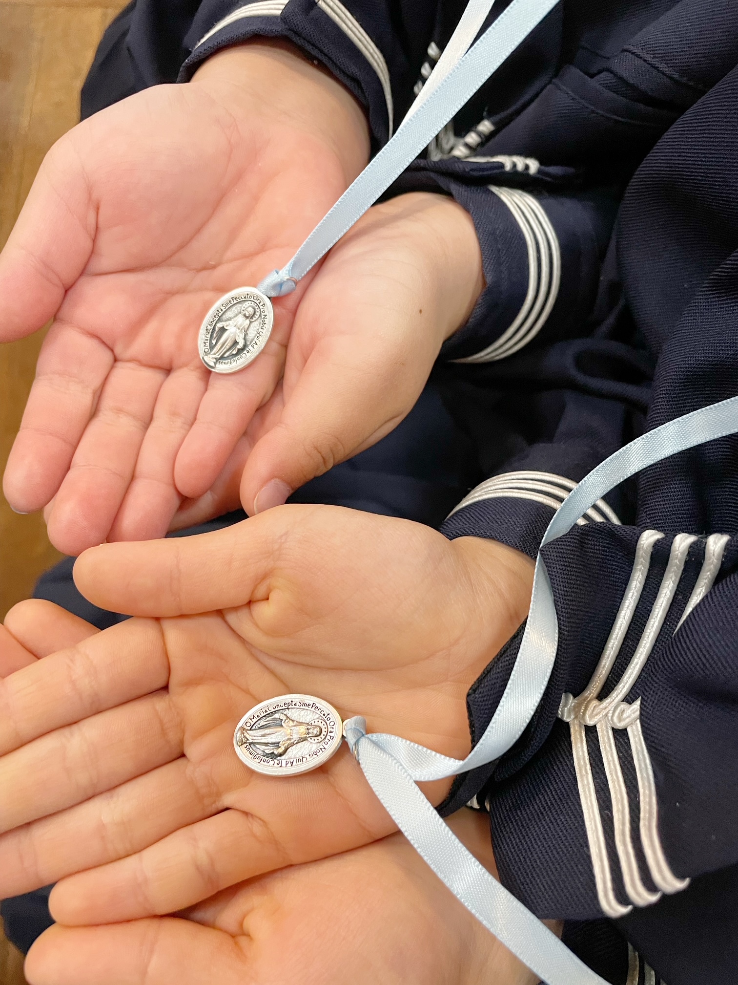 聖水をかけて祝福していただいたおメダイを