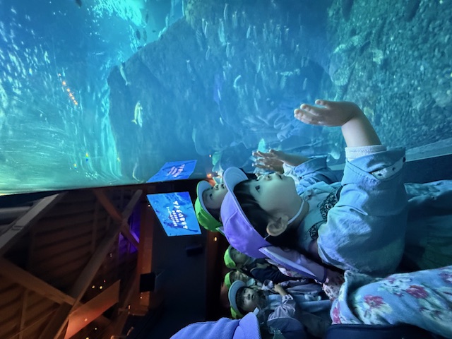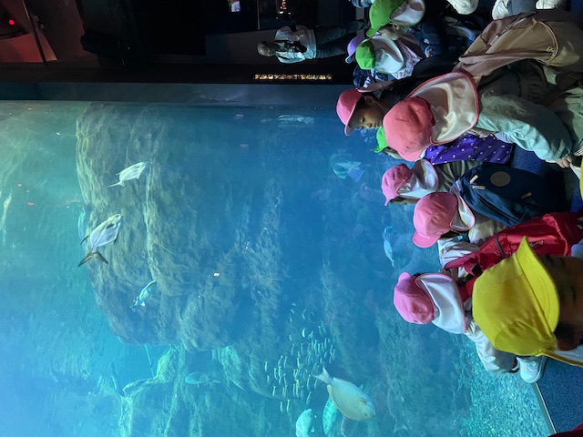 行事 2025.10.21 秋の遠足 秋の遠足で、新江の島水族館に行ってきました。 水の中に住むたくさんの生き物を前に 「足がながーい!」「先生、あれ食べられる?」など 興味津々な様子でした。 イルカショーも見ることができ、初めて聞くイルカの鳴き声や、それぞれの特徴など発見と学びがたくさんある遠足でした。