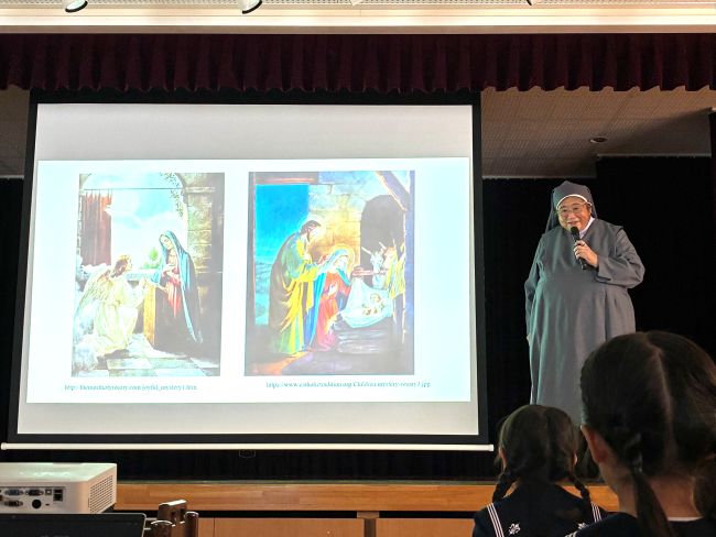 10月はロザリオの月です。皆でホールに集い、ロザリオのお祈りをいたしました。