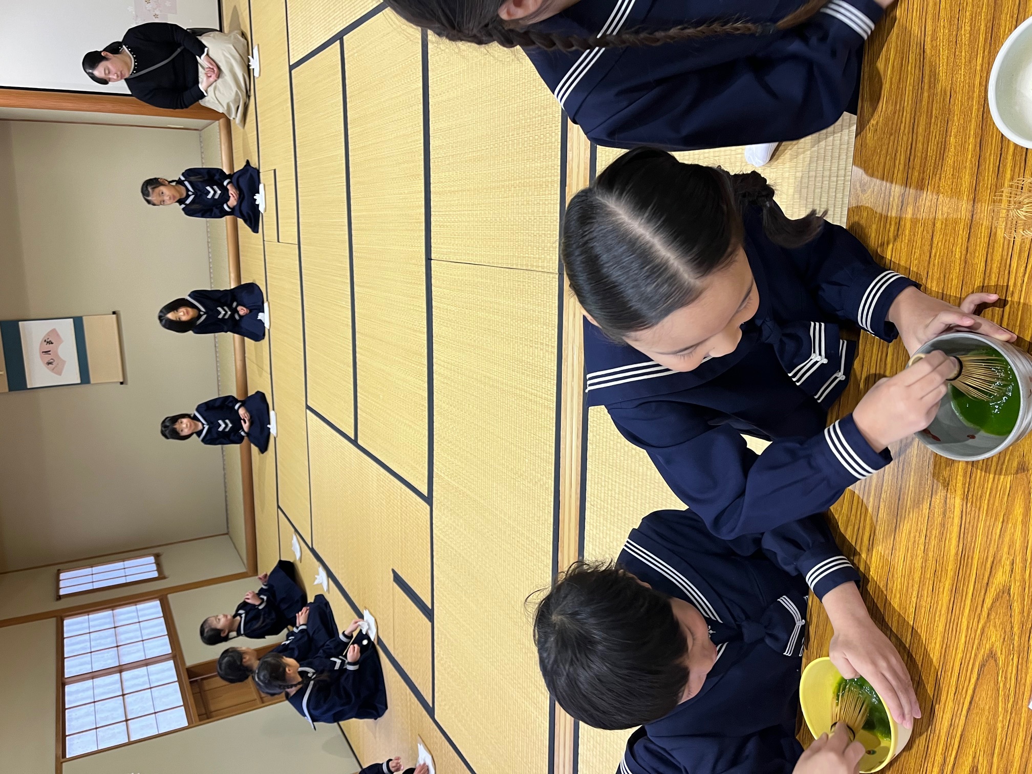 先日は茶道の先生にいらしていただき、小学校の和室をお借りして茶道体験をいたしました。