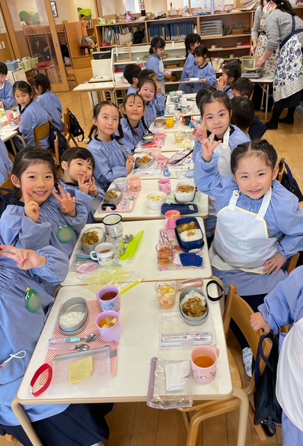 カレーの良い香りがクラスに広がると、子どもたちはうっとりしていました。