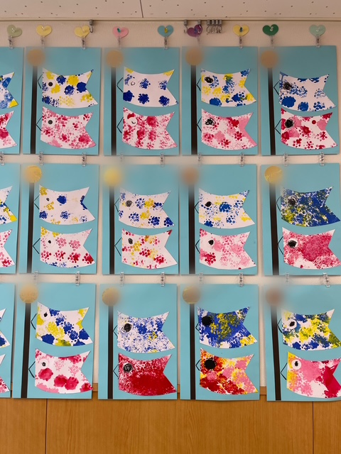 子どもたちが作った、個性豊かな元気な鯉のぼりが飾られた幼稚園は、たくさんのパワーで溢れています。